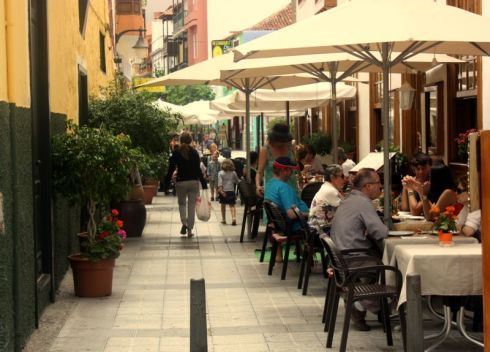 It's the time at the end of May when people visit different Canary islands. Depicted is Tenerife eating out May 30, 2016. Then many people filled the tables outside a restaurant in La Ranilla.